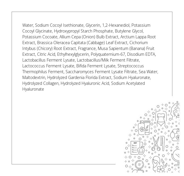 Jemná pěna pro každodenní čištění, která účinně odstraňuje všechny nečistoty a zbytky make-upu. Unikátní složení obsahuje jedinečný komplex probiotik a prebiotik, který je zodpovědný za stimulaci vývoje správné mikroflóry na povrchu pokožky. Konzistence přípravku se po kontaktu s vodou změní v nadýchanou pěnu, která pokožku obalí a dodá jí pořádnou dávku hydratace. Pěna proniká do pórů, čistí je do hloubky a zanechává pleť křišťálově čistou a hladkou. Složení obohacené o směs extraktů, kyselinu hyaluronovou, kolagen a mořskou vodu významně ovlivňuje správnou funkci pokožky. Po použití získáte dlouhotrvající osvěžení bez pocitu nepohodlí.